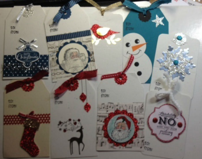 Except for the ribbon & Brads, everything on this card comes from the POP & PLACE HOLIDAY GIFT TAGS BOOK $9.95 ALONG WITH THE STAMP SET (19 STAMPS) CHRISTMAS TAGABLES, $13.95. You can get both the an assortment of tags, the stamp set, a soft suede stamping spot and a clear block ‘C’ for $24.95. Just use the item# 135290 if ordering the entire bundle on line. I can also take your order if you would rather buy them separately. Contact me HERE.